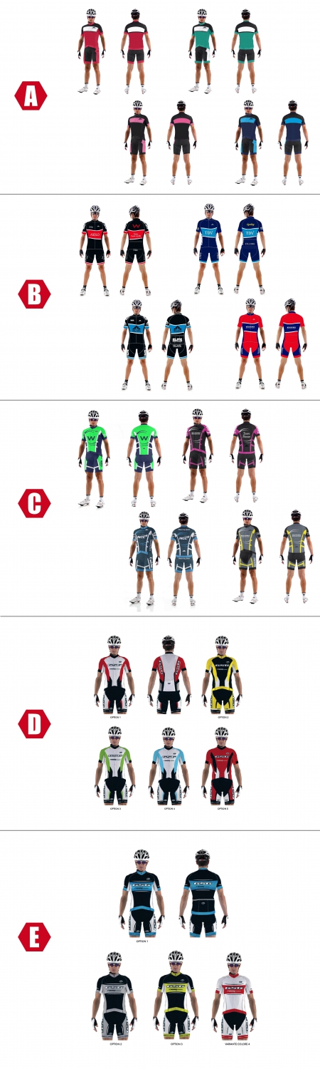 Tast inn cycling jerseys i Google-search og du finner 1000-vis av ulike drakter. Her kan du også søke etter retro cycling jerseys, eller vintage cycling jerseys, alt etter hva du leter etter. Så kan du sende oss et bilde og vi kan lage forslag med den modellen som bakteppe.